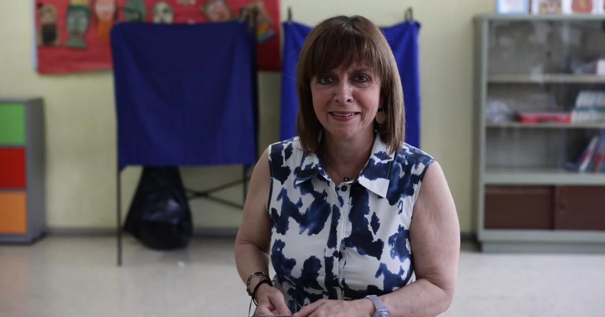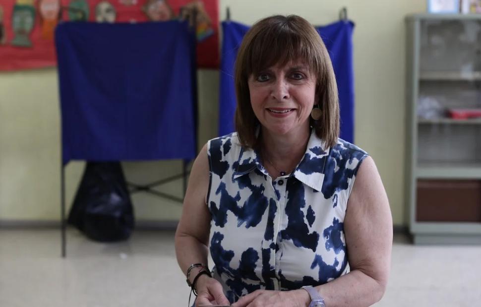 Ψήφισε στο κέντρο της Αθήνας η ΠτΔ Κατερίνα Σακελλαροπούλου.