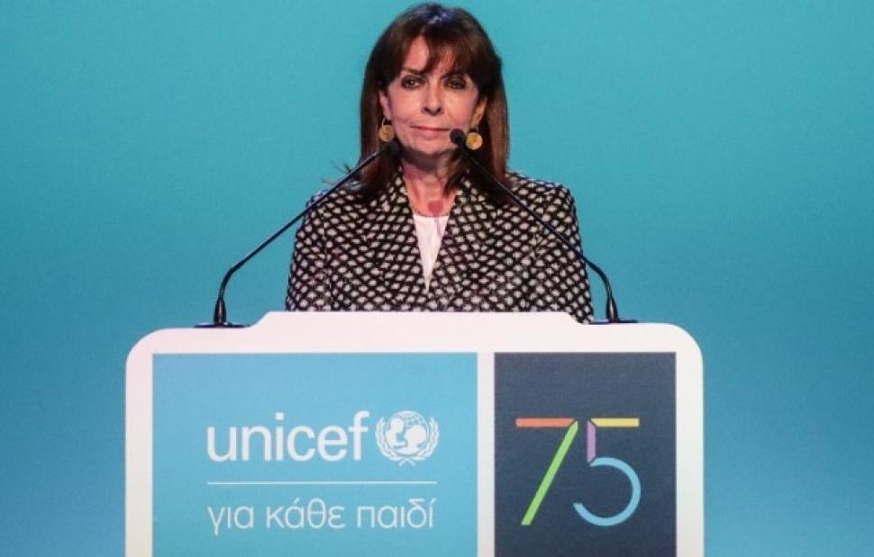 H Πρόεδρος της Δημοκρατίας Κατερίνα Σακελλαροπούλου απηύθυνε απόψε χαιρετισμό στην επετειακή εκδήλωση της Unicef για τα 75 έτη Συνεργασίας για την Υπεράσπιση των Δικαιωμάτων του Παιδιού στην Ελλάδα και τον Κόσμο, που πραγματοποιήθηκε στο Ζάππειο Μέγαρο.