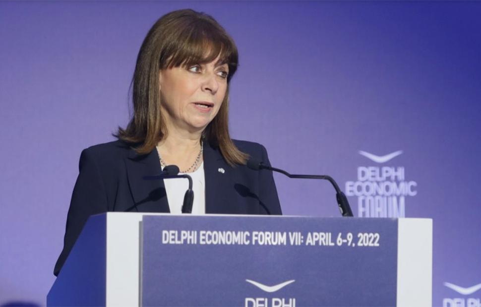 «Σε μια γειτονιά ταραγμένη και απρόβλεπτη, η Ελλάδα παραμένει άγκυρα ευρωπαϊκής σταθερότητας, παράγοντας ειρήνης και περιφερειακής συνεργασίας» τόνισε η Πρόεδρος της Δημοκρατίας Κατερίνα Σακελλαροπούλου εγκαινιάζοντας τις εργασίες του 7ου Οικονομικού Φόρουμ των Δελφών.