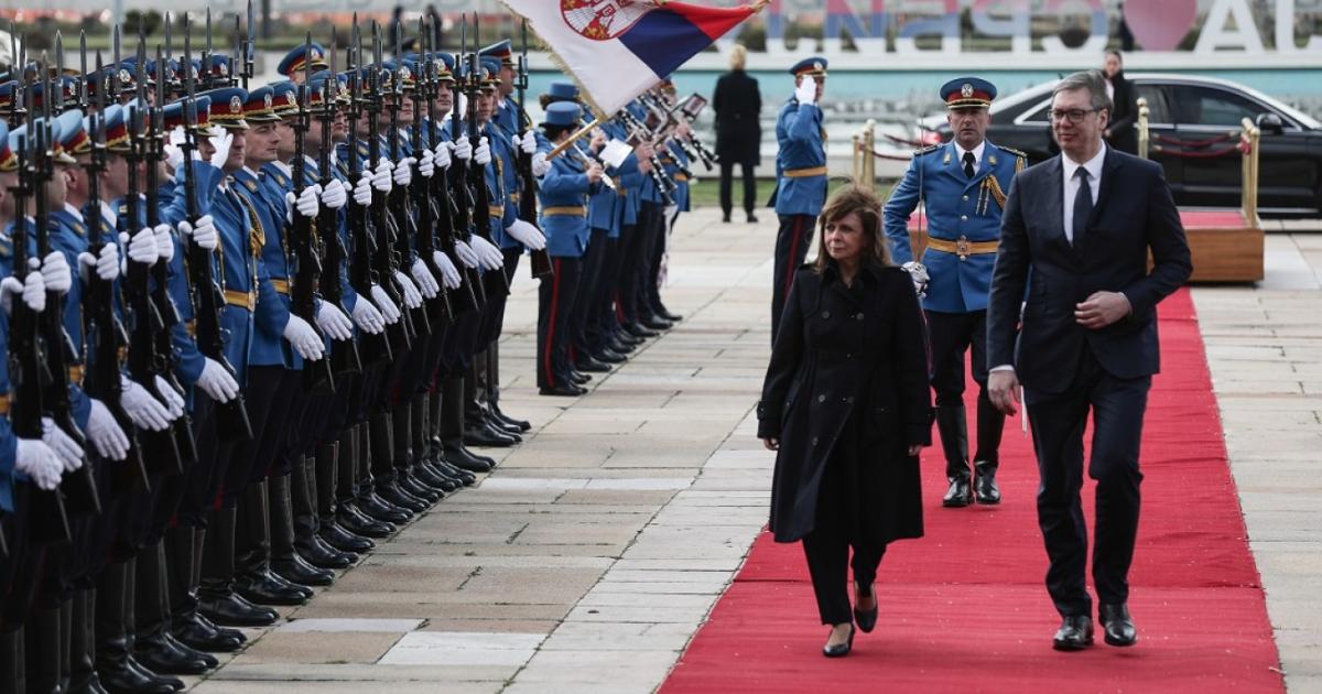 Με τον Πρόεδρο της Σερβίας, Αλεξάνταρ Βούτσιτς, συναντήθηκε η Πρόεδρος της Δημοκρατίας, Κατερίνα Σακελλαροπούλου, στο Βελιγράδι. Η επίσημη τελετή υποδοχής πραγματοποιήθηκε μπροστά από το κυβερνητικό κτίριο «Παλάτι της Σερβίας» με την ανάκρουση των εθνικών ύμνων των δύο χωρών και την απόδοση τιμών από την Προεδρική Φρουρά.