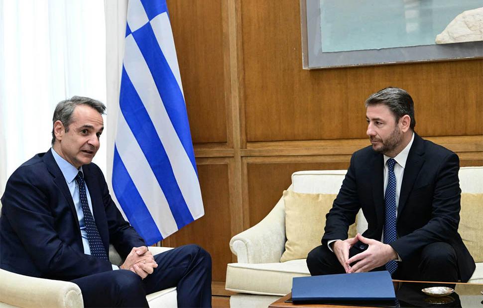 Όλος ο διάλογος Μητσοτάκη-Ανδρουλάκη στην έναρξη της συνάντησής τους