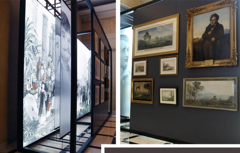 Συνολικά ο θεατής μπορεί να δει 34 θέματα μνημειακών τοιχογραφιών και 367 φορητά εκθέματα, διαφόρων κατηγοριών (χειρόγραφα, βιβλία, πίνακες ζωγραφικής, χαρακτικά, γλυπτά, διακοσμητικά καλλιτεχνήματα – φιλελληνικά πιάτα, βάζα, ρολόγια – παρτιτούρες, όπλα).