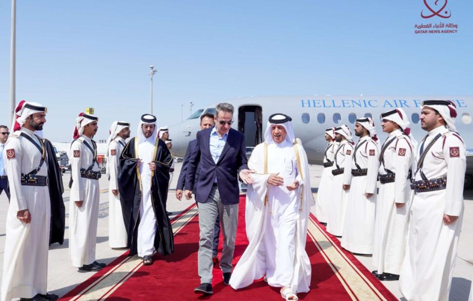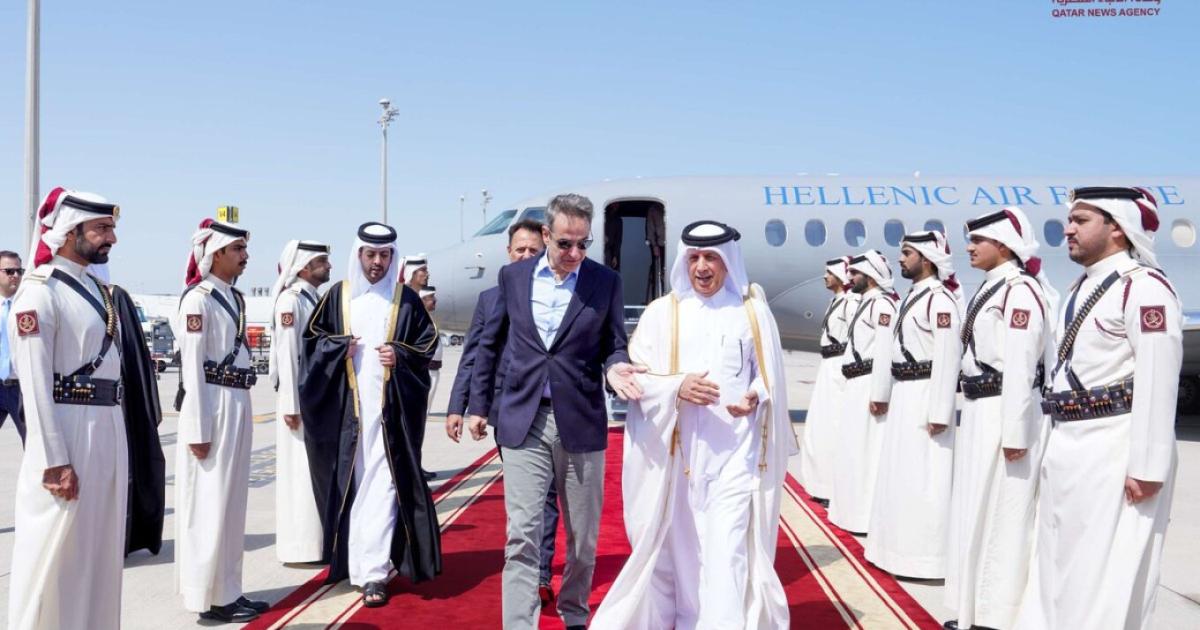 Στη Ντόχα του Κατάρ έφτασε ο Κυριάκος Μητσοτάκης για μια επίσκεψη εργασίας. Σύμφωνα με Qatar News Agency, τον Έλληνα πρωθυπουργό και την αντιπροσωπεία που τον συνοδεύει, υποδέχθηκαν κατά την άφιξή τους στο Διεθνές Αεροδρόμιο Hamad ο υφυπουργός Εξωτερικών του Κατάρ, Sultan bin Saad Al Muraikhi, ο πρέσβης του Κράτους του Κατάρ στην Ελλάδα, Ali bin Khalfan Al Mansouri και ο πρέσβης της χώρας μας στο Κράτος του Κατάρ Ιωάννης Ιωαννίδης.