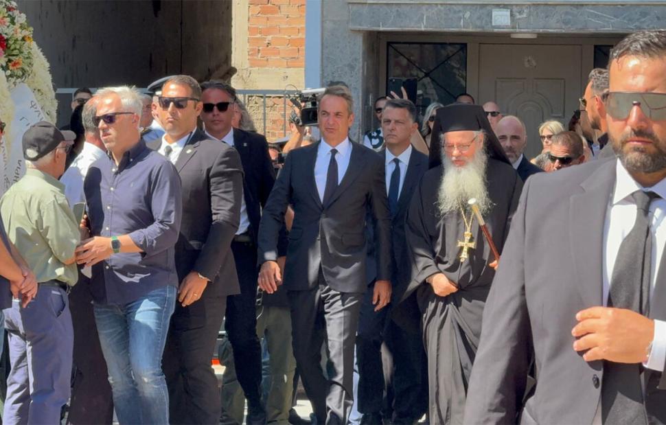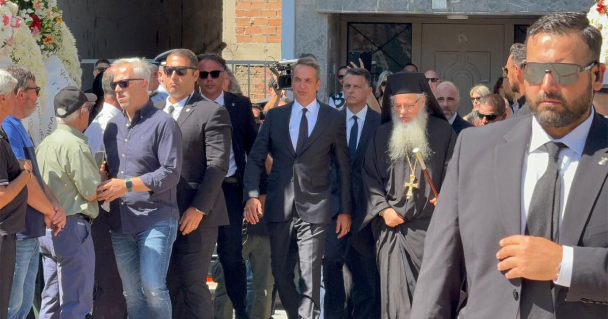 Ο Κυριάκος Μητσοτάκης έφτασε στον ναό λίγα λεπτά πριν τις 12:00 το μεσημέρι, οπότε και είχε προγραμματιστεί η εξόδιος ακολουθία του πρώην υφυπουργού.