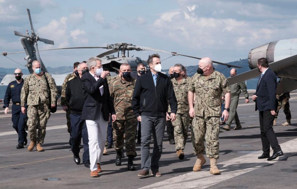 «Θα ήθελα να τονίσω πόσο μεγάλη τιμή είναι για μένα προσωπικά, αλλά και για την εθνική μας αποστολή που έχουμε μαζί μας τον Πρωθυπουργό, Κυριάκο Μητσοτάκη, αλλά και το επιτελείο του, από την Ομάδα Εθνικής Ασφάλειας, στο αεροπλανοφόρο USS Dwight D. Eisenhower, στη βάση της Σούδας, σήμερα.
