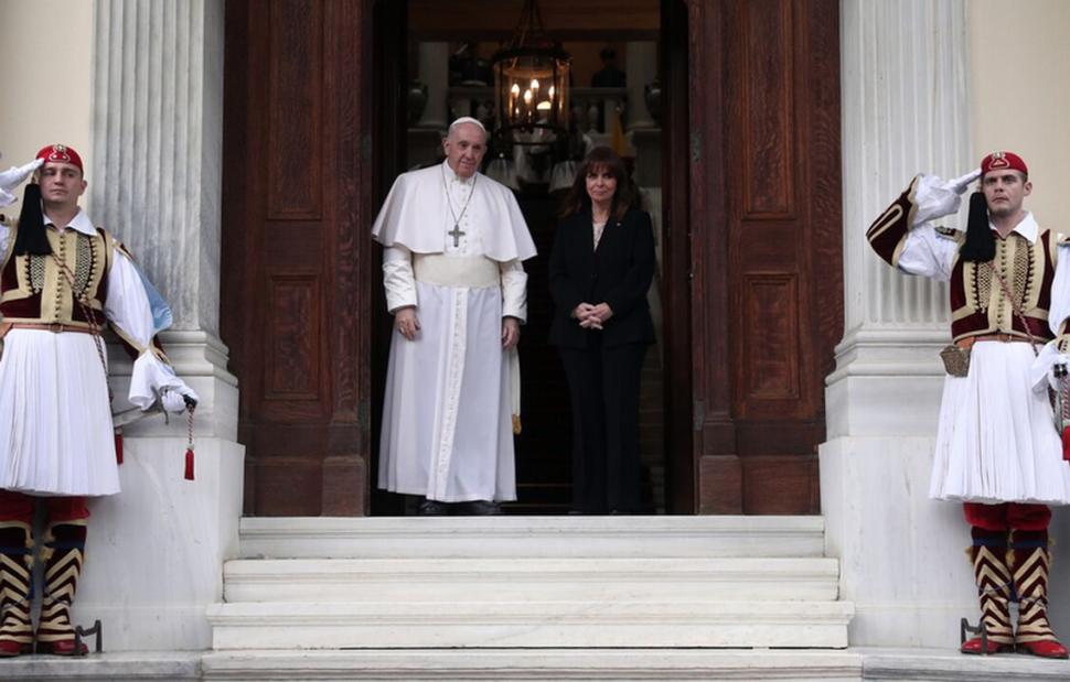 Ο προκαθήμενος της Ρωμαιοκαθολικής Εκκλησίας έφτασε στην Ελλάδα κατόπιν πρόσκλησης της κ. Σακελλαροπούλου, με αφορμή τα 200 χρόνια από την Ελληνική Επανάσταση.