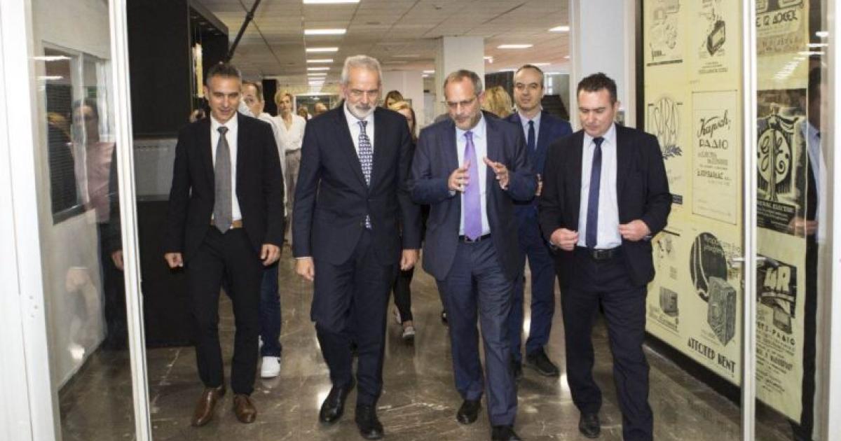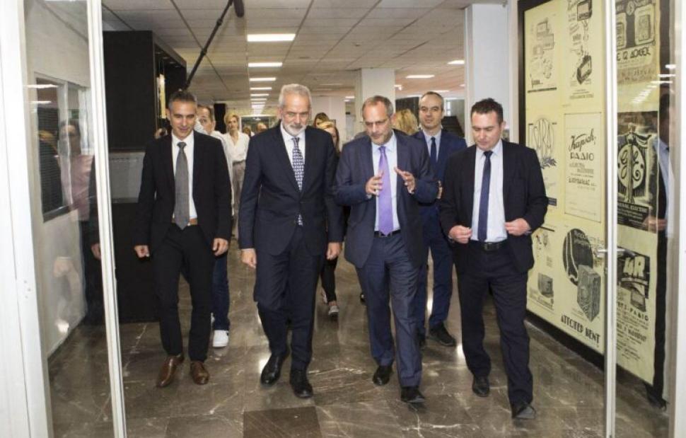 Ο κ. Ζούλας ξενάγησε τον κ. Σαρμά στα νέα στούντιο και τις εγκαταστάσεις του ραδιομεγάρου, του παρουσίασε τις τεχνολογίες αιχμής και το αναπτυξιακό πρόγραμμα της δημόσιας επιχείρησης.