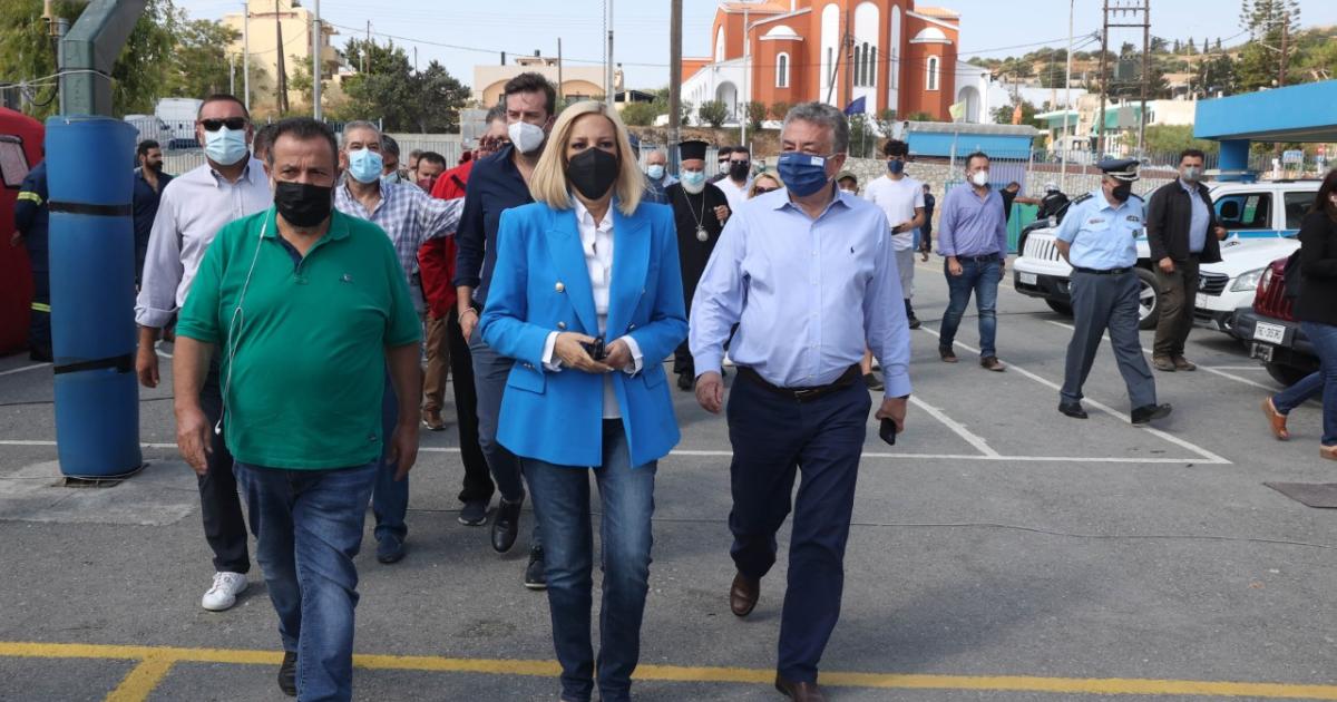 Tις πληγείσες περιοχές από τον σεισμό των 5,8 Ρίχτερ στο Ηράκλειο Κρήτης επισκέφτηκε η Πρόεδρος του ΚΙΝΑΛ, Φώφη Γεννηματά.