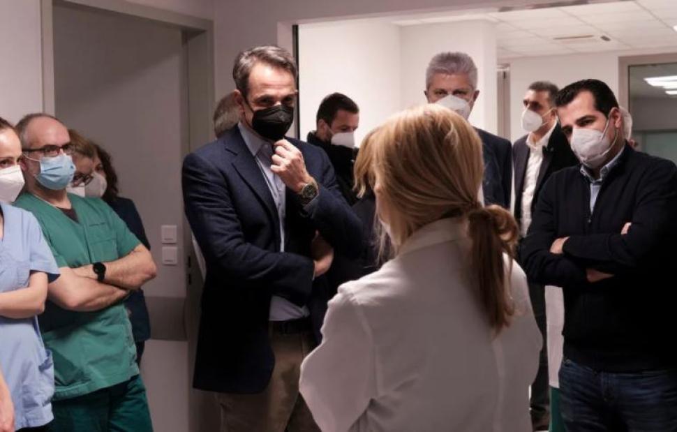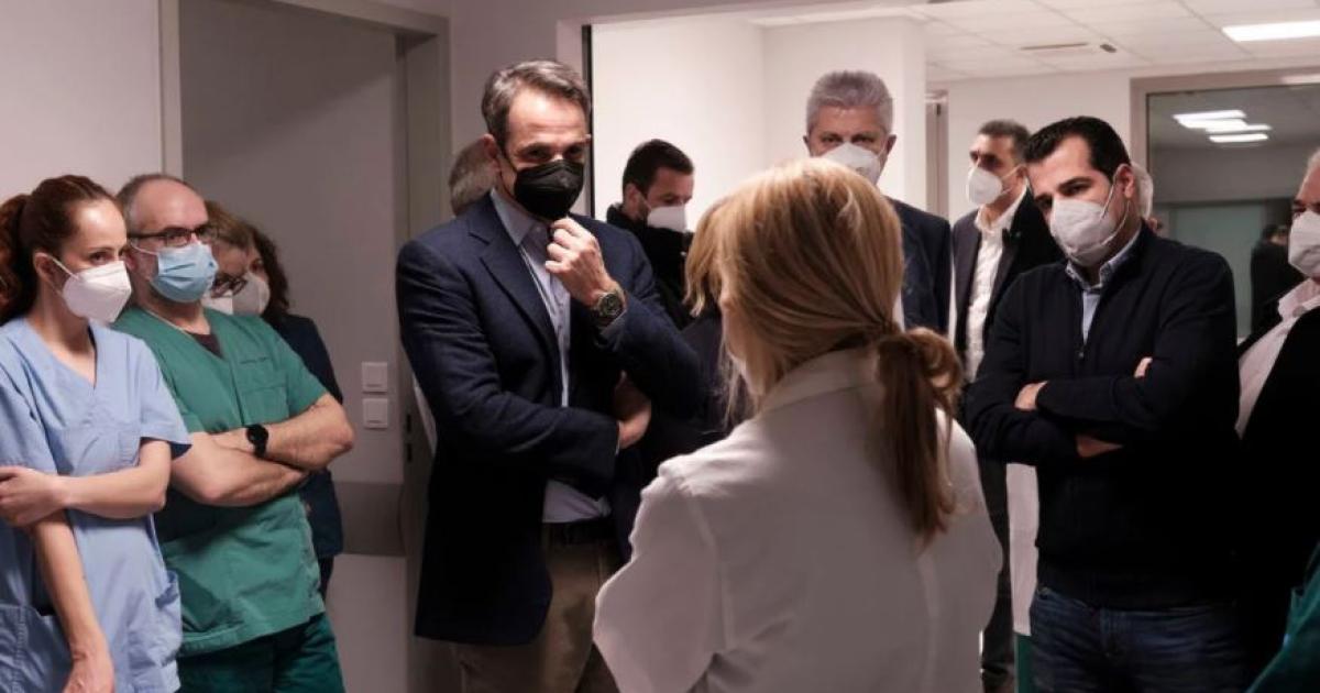 Ο Κυριάκος Μητσοτάκης επισκέφθηκε το απόγευμα της Πρωτοχρονιάς το Νοσοκομείο «Σωτηρία» που βρίσκεται στην αιχμή της μάχης κατά του Covid-19.
