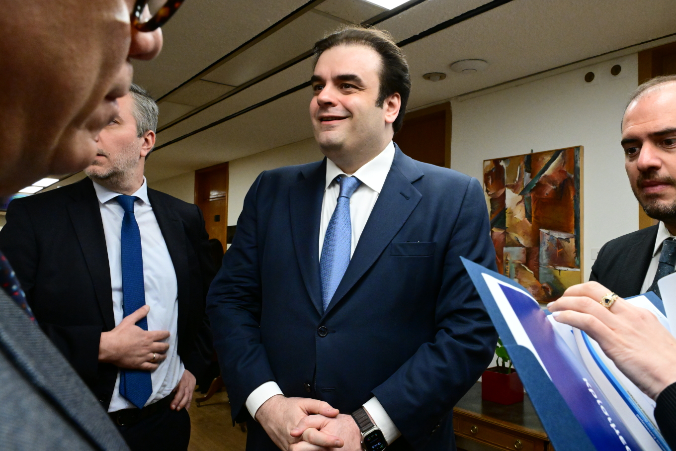 Ο Πρωθυπουργός συνάντησε στο υπουργείο Οικονομικών, τον νέο «τσάρο» Κυριάκο Πιερρακάκη, τον αναπληρωτή υπουργό Νίκο Παπαθανάση και τους δύο υφυπουργούς Θάνο Πετραλιά και Γιώργο Κώτσηρα. Στη συνάντηση συμμετείχε και ο πρώην υπουργός Οικονομικών και πλέον αντιπρόεδρος της Κυβέρνησης, Κωστής Χατζηδάκης.