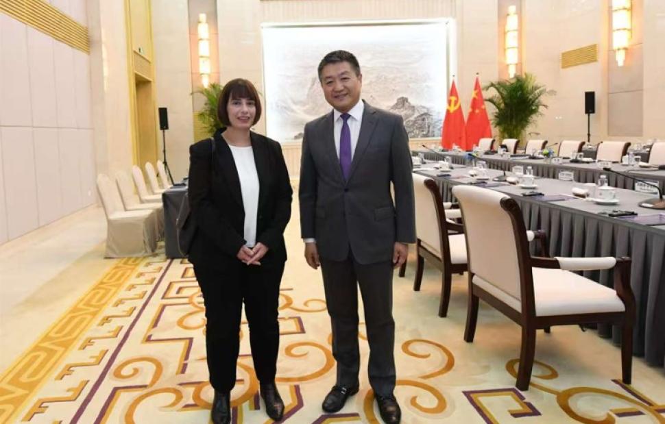 Κατά την επίσκεψή της στην Κίνα, η Ράνια Σβίγκου, υπεύθυνη στην Πολιτική Γραμματεία του του ΣΥΡΙΖΑ για τον Τομέα Διεθνών και Ευρωπαϊκών Υποθέσεων, συναντήθηκε, μαζί με αντιπροσωπεία πολιτικών από την Ε.Ε., με τον αναπληρωτή υπουργό του Τμήματος Διεθνών του Κ.Κ. Κίνας, Λου Κανγκ.