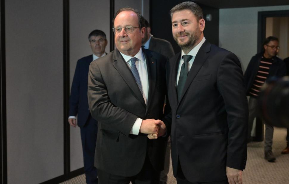 Σε εγκάρδιο κλίμα συναντήθηκαν ο πρόεδρος του ΠΑΣΟΚ, Νίκος Ανδρουλάκης, και ο πρώην Πρόεδρος της Γαλλίας, Φρανσουά Ολάντ.