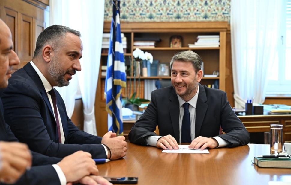 Mε τον δήμαρχο Βηθλεέμ Μαχέρ Νικόλα Καναουάτι και τον πρέσβη της Παλαιστίνης στην Αθήνα Γιούσεφ Ντόρκχομ συναντήθηκε το μεσημέρι ο Πρόεδρος του ΠΑΣΟΚ-Κινήματος Αλλαγής, Νίκος Ανδρουλάκης.
