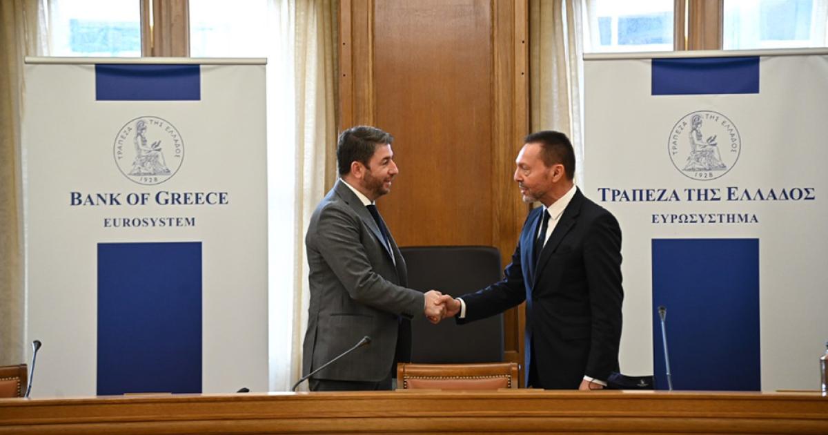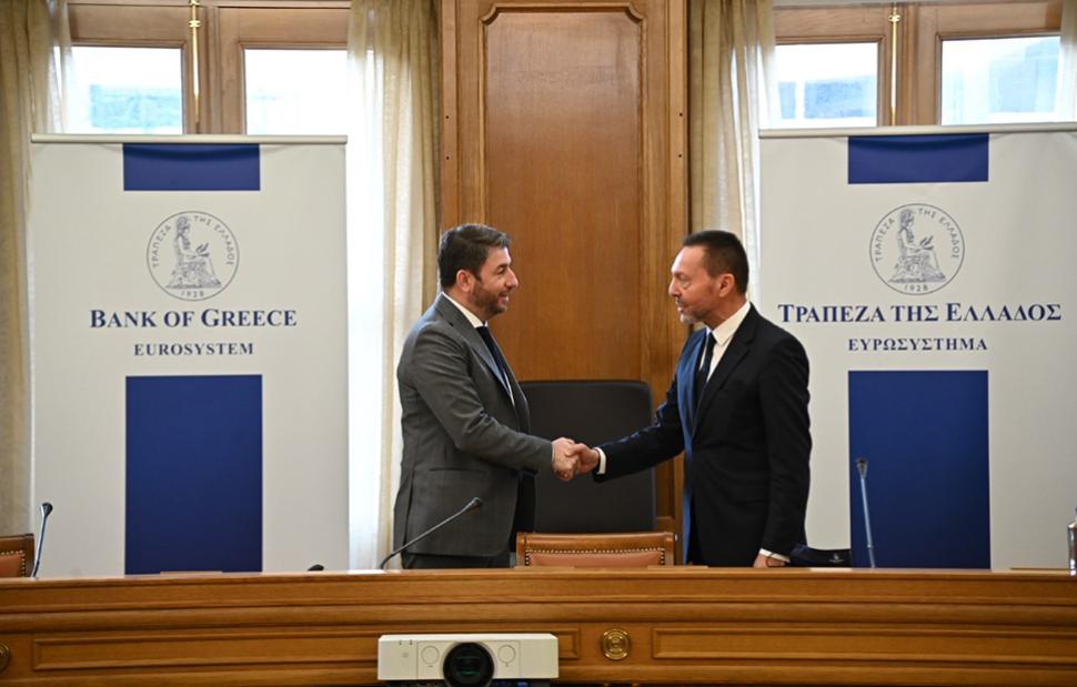 Ενημερωτική συνάντηση είχε σήμερα ο πρόεδρος του ΠΑΣΟΚ-ΚΙΝΑΛ κ. Νίκος Ανδρουλάκης και οι βουλευτές κ. Μιχάλης Κατρίνης και κ. Κώστας Σκανδαλίδης, με τον διοικητή της Τράπεζας της Ελλάδος (ΤτΕ) κ. Γιάννη Στουρνάρα και τους υποδιοικητές, στο κτήριο της ΤτΕ.