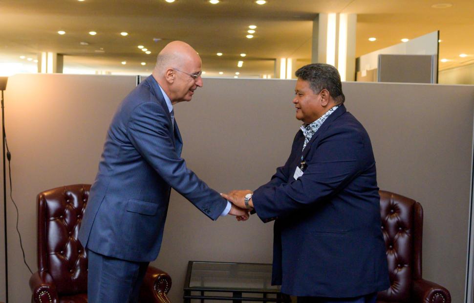#NewYork: Ι held 1st meeting with #Palau counterpart, Gustav Aitaro, on the margins of #UNGA. Focus on shared commitment to #UNCLOS & 🇬🇷-🇵🇼 cooperation in the protection of maritime environment. pic.twitter.com/UiQj5VStYr