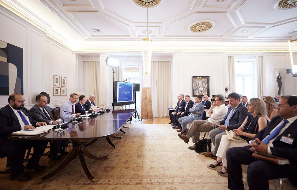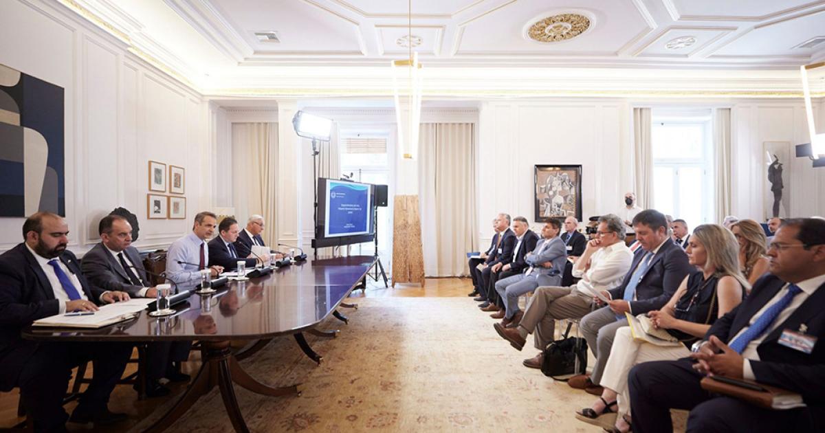 Με τους Δημάρχους των 42 νησιών της χώρας με πληθυσμό κάτω των 5.000 κατοίκων συναντήθηκε σήμερα ο Πρωθυπουργός Κυριάκος Μητσοτάκης στο Μέγαρο Μαξίμου. Στη σύσκεψη πήραν το λόγο όλοι οι επικεφαλής των μικρών νησιωτικών Δήμων, οι οποίοι αναφέρθηκαν στα έργα που έχουν προχωρήσει στα νησιά τους και στη συνεργασία που έχουν με την Κυβέρνηση, αλλά και στα προβλήματα που αντιμετωπίζουν ακόμη.
