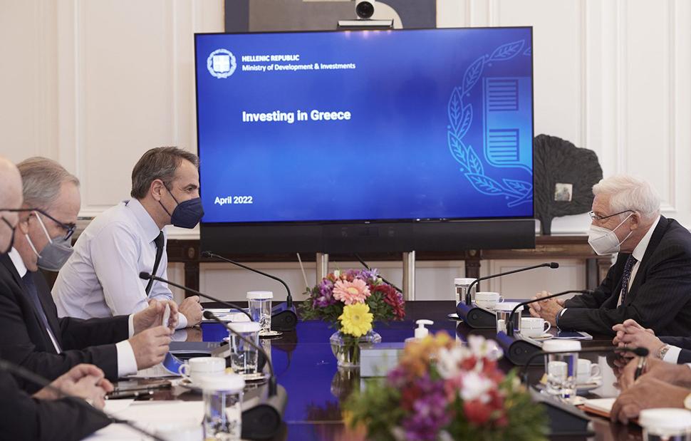 Ο πρωθυπουργός, Κυριάκος Μητσοτάκης, συναντήθηκε στο Μέγαρο Μαξίμου με τον Charles Dallara, advisory partner του επενδυτικού ομίλου Partners Group, και με τον διευθύνοντα σύμβουλο της εταιρείας Pharmathen, Δημήτρη Καδή, οι οποίοι τον ενημέρωσαν για την απόφαση της φαρμακοβιομηχανίας να αυξήσει τις επενδύσεις της στην Ελλάδα κατά 50 εκατομμύρια ευρώ, την περίοδο 2022-26.