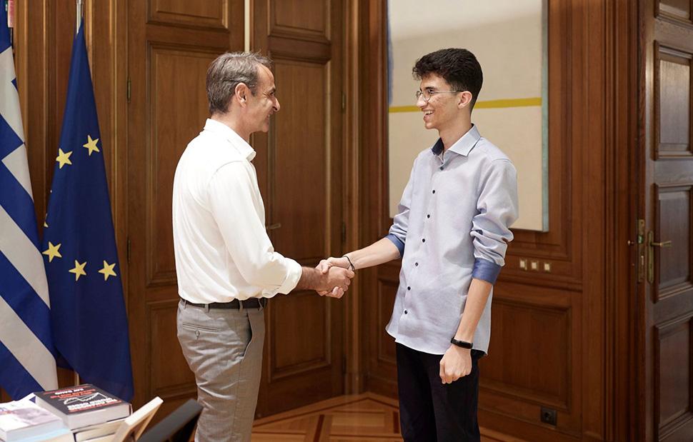 Με τον 19χρονο μαθητή από το Ιράν Kourosh Baygi Nourmohammadi, ο οποίος αρίστευσε στις φετινές πανελλαδικές εξετάσεις μολονότι έφτασε στην Ελλάδα πριν από μόλις τρία χρόνια, συναντήθηκε το μεσημέρι ο Πρωθυπουργός Κυριάκος Μητσοτάκης, στο Μέγαρο Μαξίμου.