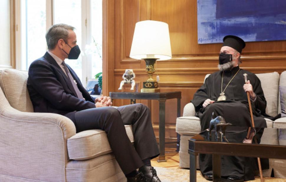 Με τον Αρχιεπίσκοπο Αυστραλίας Μακάριο είχε συνάντηση στο Μέγαρο Μαξίμου ο Πρωθυπουργός, Κυριάκος Μητσοτάκης.