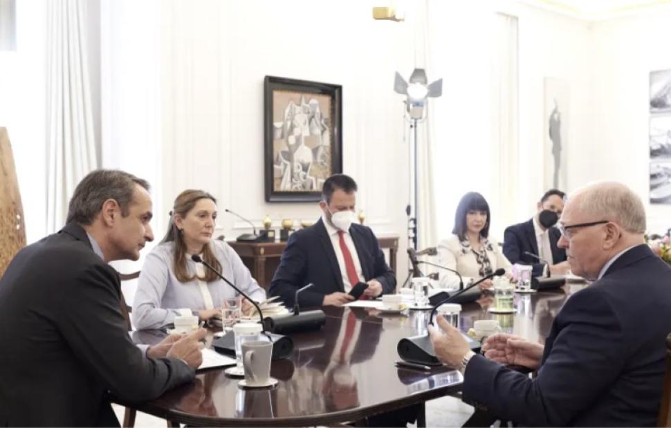Με τον Πρόεδρο της Γερουσίας του Καναδά, George J. Furey, και με αντιπροσωπεία καναδών γερουσιαστών συναντήθηκε ο Πρωθυπουργός, Κυριάκος Μητσοτάκης συναντήθηκε το μεσημέρι, στο Μέγαρο Μαξίμου.