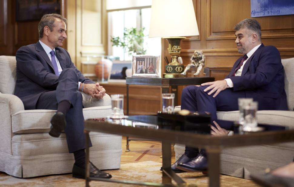 Ο Κυριάκος Μητσοτάκης συναντήθηκε στο Μέγαρο Μαξίμου με τον Πρωθυπουργό της Ρουμανίας, Ion-Marcel Ciolacu. Είναι η πρώτη συνάντηση των δύο ηγετών μετά την ανάληψη καθηκόντων πρωθυπουργού από τον κ. Ciolacu.