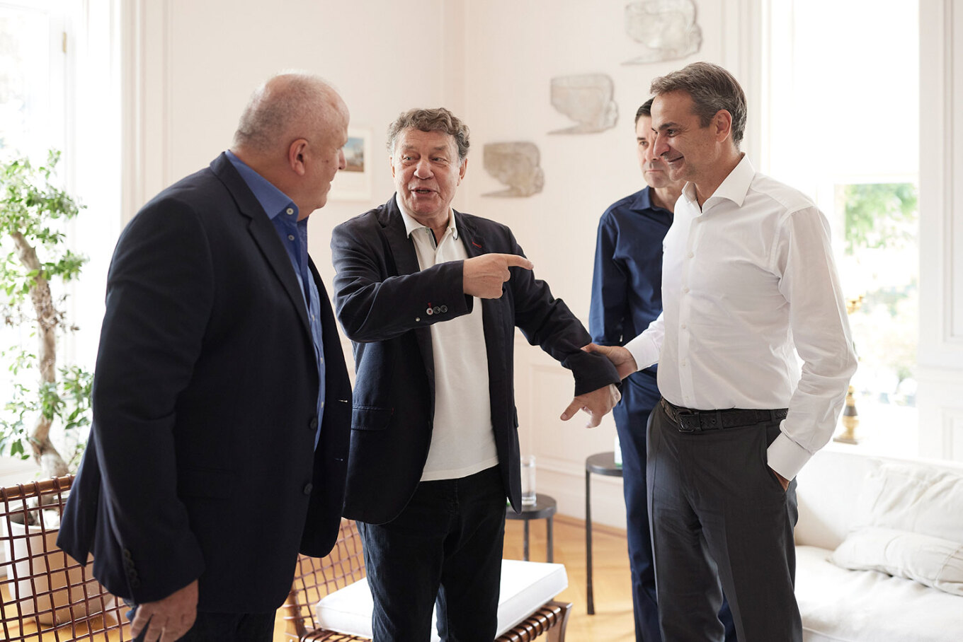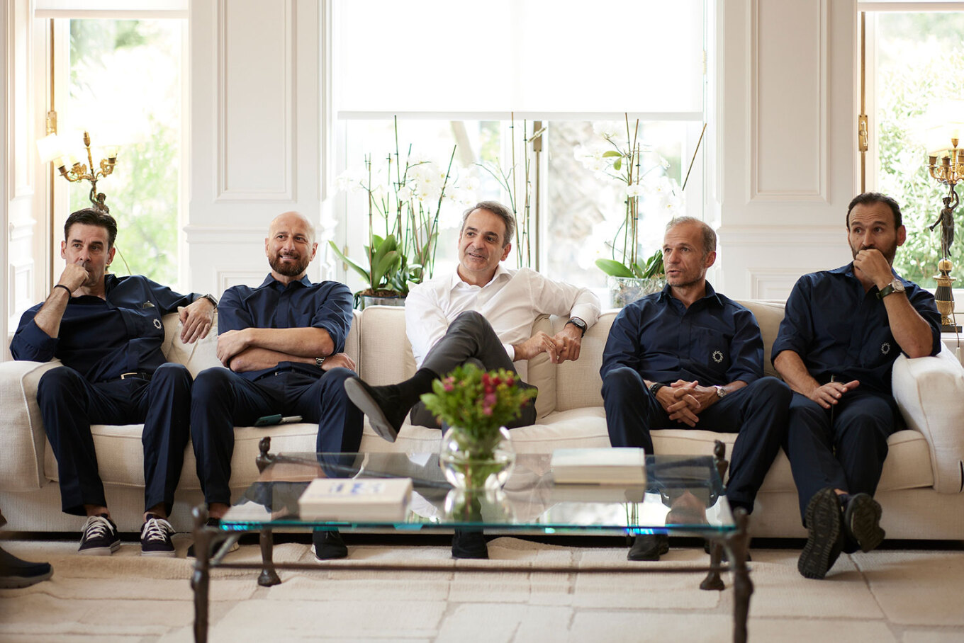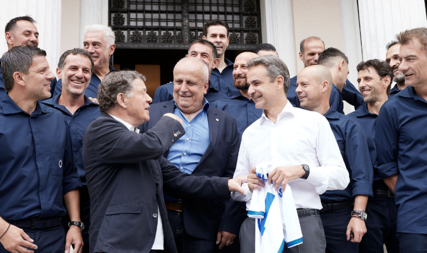 «Είκοσι χρόνια μετά, μας κάνετε υπερήφανους», είπε ο Κυριάκος Μητσοτάκης στον ομοσπονδιακό προπονητή Otto Rehhagel, τον βοηθό του Γιάννη Τοπαλίδη και τους παίκτες της ομάδας που, σαν σήμερα πριν από ακριβώς 20 χρόνια, κατέκτησε την κορυφή του ευρωπαϊκού ποδοσφαίρου.