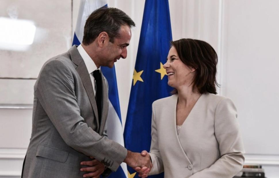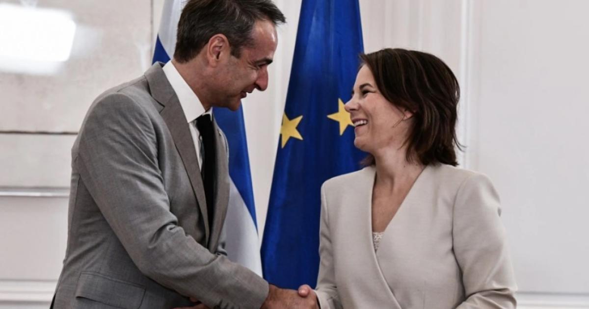 Την υπουργό Εξωτερικών της Γερμανίας, Αναλένα Μπέρμποκ, υποδέχτηκε στο Μέγαρο Μαξίμου στις 10:30 το πρωί ο Πρωθυπουργός, Κυριάκος Μητσοτάκης.