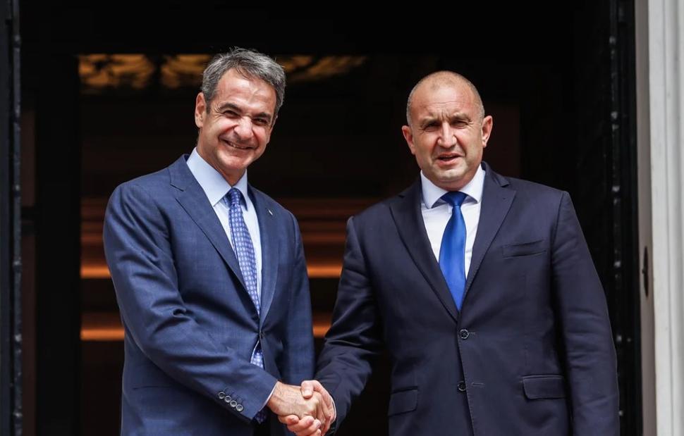 Τον Πρόεδρο της Βουλγαρίας, Ρούμεν Ράντεφ, υποδέχθηκε νωρίτερα στο Μέγαρο Μαξίμου ο Πρωθυπουργός, Κυριάκος Μητσοτάκης.