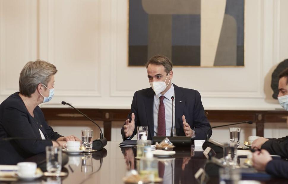 Στο επίκεντρο της συνάντησης βρέθηκε το μεταναστευτικό. Ο Πρωθυπουργός και η Ευρωπαία επίτροπος συζήτησαν για την πρόταση της Κομισιόν για το νέο Σύμφωνο για τη Μετανάστευση και το Άσυλο.
