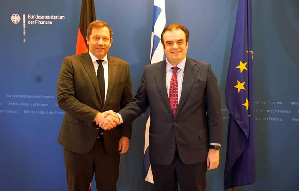 Σε εξαιρετικά θετικό κλίμα πραγματοποιήθηκε σήμερα στο Βερολίνο η συνάντηση του Υπουργού Εθνικής Οικονομίας και Οικονομικών, Κυριάκου Πιερρακάκη, με τον Αντικαγκελάριο και Ομοσπονδιακό Υπουργό Οικονομικών της Γερμανίας, Λαρς Κλίνγκμπαϊλ. Η συζήτηση επιβεβαίωσε τον στρατηγικό χαρακτήρα των σχέσεων Ελλάδας - Γερμανίας και ανέδειξε την κοινή πεποίθηση ότι η Ευρώπη οφείλει να κινηθεί αποφασιστικά μπροστά.