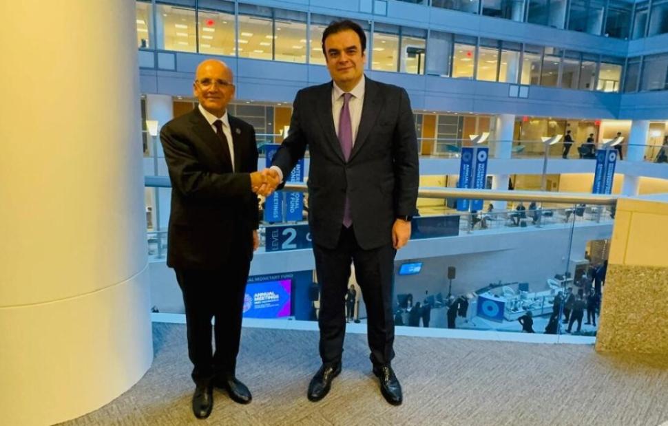 Με τον υπουργό Οικονομικών της Τουρκικής Δημοκρατίας, Mehmet Şimşek, συναντήθηκε το πρωί στην Ουάσιγκτον ο υπουργός Εθνικής Οικονομίας και Οικονομικών, Κυριάκος Πιερρακάκης, στο περιθώριο της ετήσιας συνόδου του Διεθνούς Νομισματικού Ταμείου και της Παγκόσμιας Τράπεζας.