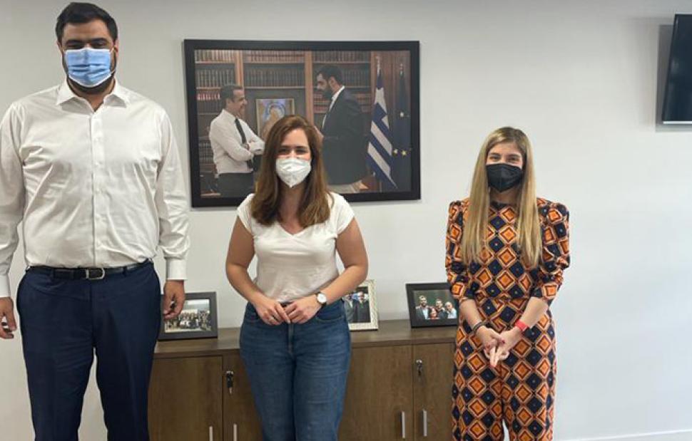 Την πρόεδρο της Νεολαίας του Ευρωπαϊκού Λαϊκού Κόμματος (YEPP) και Ευρωβουλευτή του Partido Social Democrata της Πορτογαλίας Lidia Pereira υποδέχθηκε στα γραφεία της Οργάνωσης ο πρόεδρος της ΟΝΝΕΔ Παύλος Μαρινάκης.
