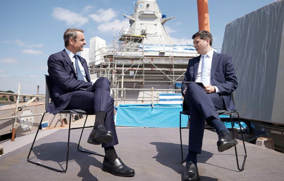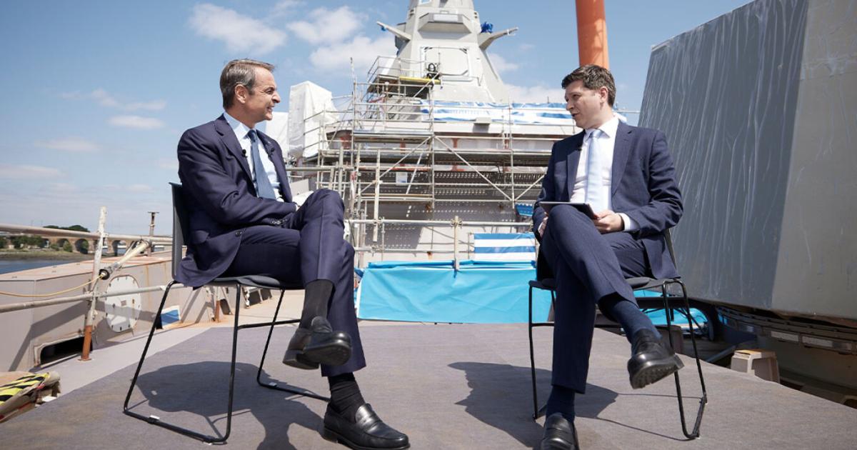 Τα παραπάνω τόνισε ο Πρωθυπουργός Κυριάκος Μητσοτάκης παραχωρώντας συνέντευξη στο αναλυτικό δελτίο ειδήσεων της ΕΡΤ και τον Απόστολο Μαγγηριάδη, τρεις ημέρες πριν από τις Ευρωεκλογές της 9ης Ιουνίου. Η συζήτηση έλαβε χώρα στη φρεγάτα «Κίμων», στις εγκαταστάσεις της Naval Group στο Λοριάν της Γαλλίας.