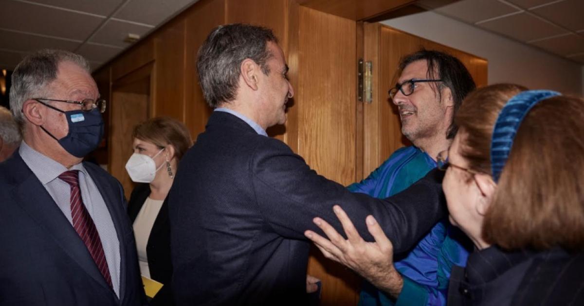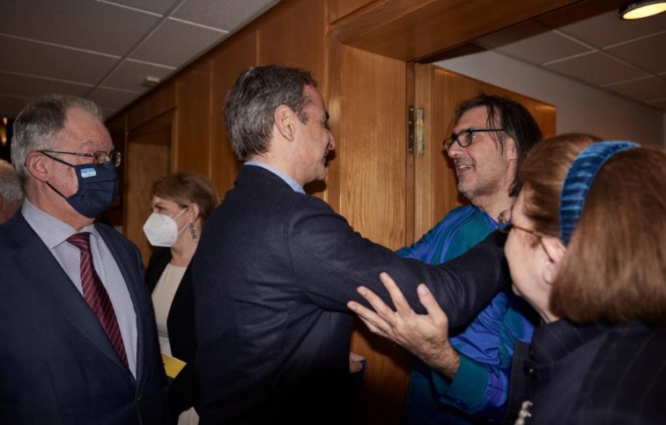 Ο Πρωθυπουργός συναντήθηκε με τον καλλιτέχνη στα καμαρίνια, συνοδευόμενος από τον Πρόεδρο της Βουλής, Κωνσταντίνο Τσούλα και από την υπουργό Πολιτισμού, Λίνα Μενδώνη.