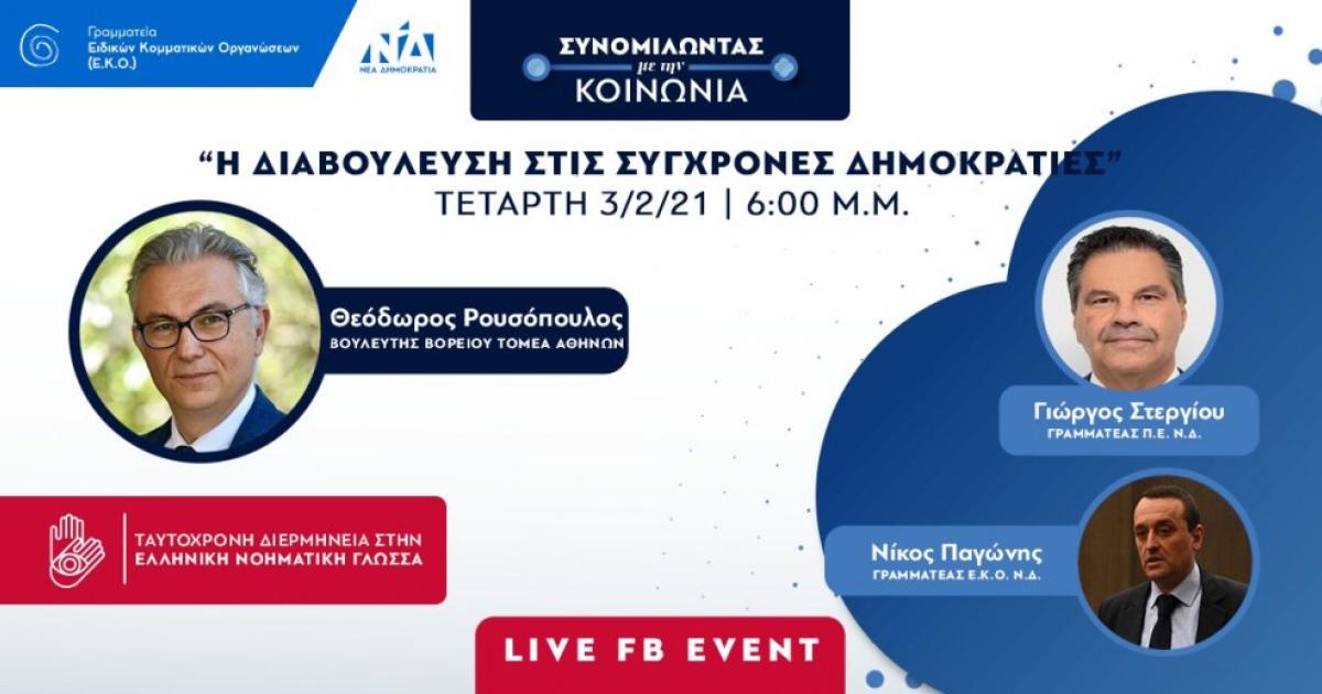 Η Γραμματεία Ειδικών Κομματικών Οργανώσεων της Νέας Δημοκρατίας συνεχίζει την υλοποίηση του κύκλου διαδικτυακών ομιλιών με τίτλο «Συνομιλώντας με την Κοινωνία».