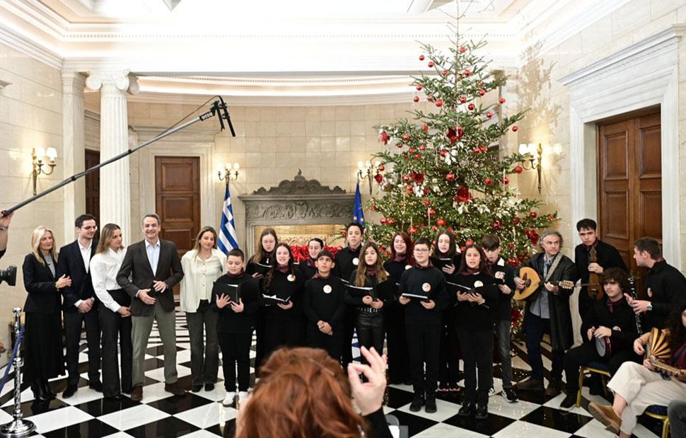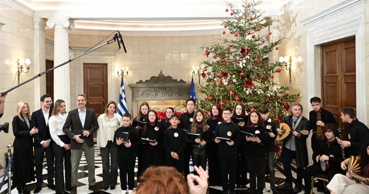 Ο πρωθυπουργός Κυριάκος Μητσοτάκης άκουσε τα κάλαντα των Χριστουγέννων στο Μέγαρο Μαξίμου από το Μουσικό Σχολείο Αλίμου και από τον Πολιτιστικό Σύλλογο Ερέτριας «Κωνσταντίνος Κανάρης».