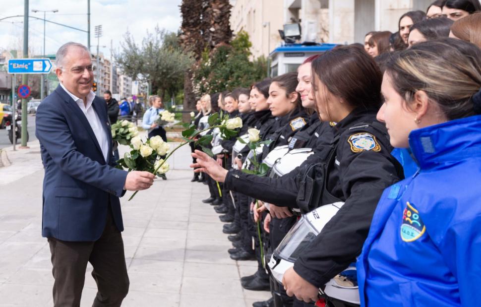 Ο Υπουργός Προστασίας του Πολίτη Τάκης Θεοδωρικάκος τίμησε την Παγκόσμια Ημέρα της Γυναίκας ανάμεσα σε γυναίκες που υπηρετούν σε όλα τα τμήματα της Ελληνικής Αστυνομίας.