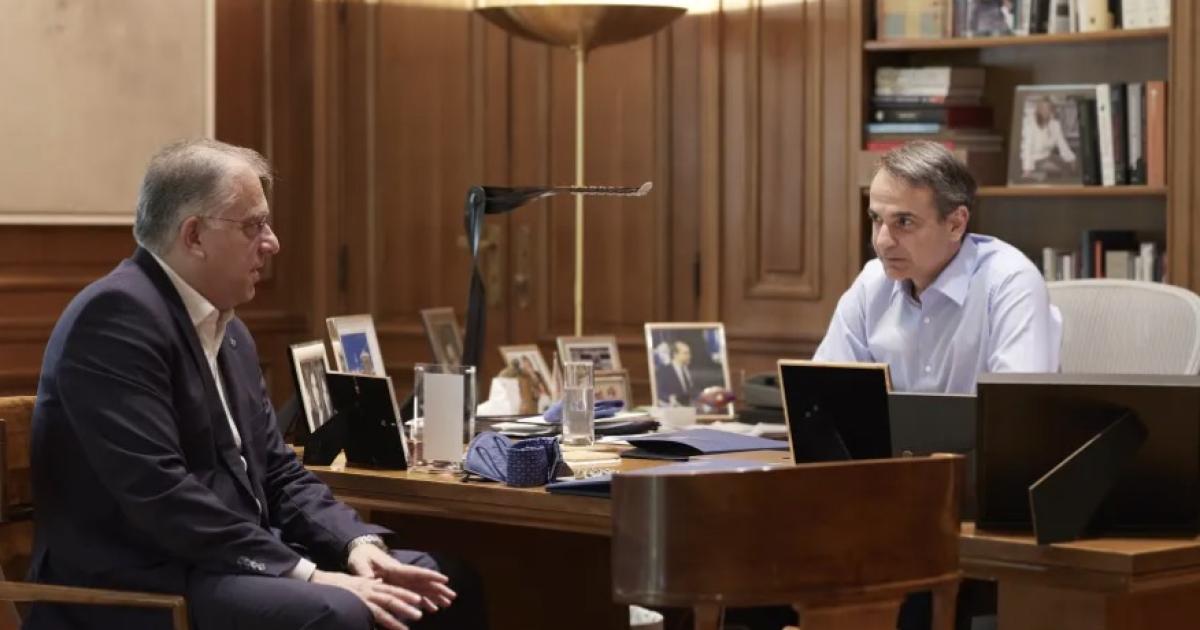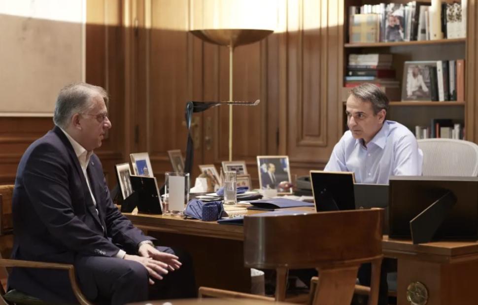 Με τον υπουργό Προστασίας του Πολίτη, Τάκη Θεοδωρικάκο, συναντήθηκε σήμερα ο Πρωθυπουργός και πρόεδρος της Νέας Δημοκρατίας, Κυριάκος Μητσοτάκης, στο γραφείο του, στο Μέγαρο Μαξίμου.