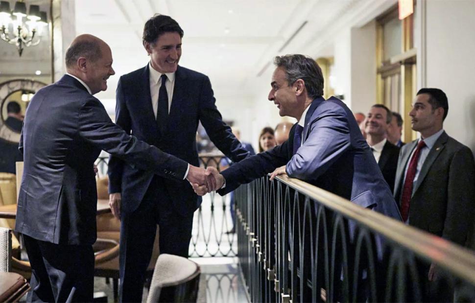 Ο Έλληνας Πρωθυπουργός είχε θερμό τετ α τετ με τον Καγκελάριο της Γερμανίας, Όλαφ Σολτς και τον Πρωθυπουργό του Καναδά, Τζάστιν Τριντό.