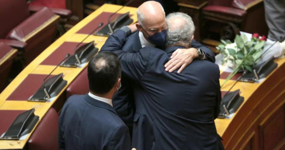 Ο πρόεδρος της Βουλής Κώστας Τασούλας, που άφησε ένα μπουκέτο λευκά λουλούδια στο σημείο όπου καθόταν η Φώφη Γεννηματά, με τα δυο του χέρια κρατούσε το πρόσωπο του Βασίλη Κεγκέρογλου του ΠΑΣΟΚ, ο οποίος ξέσπασε σε δάκρυα, αφού άφησε και αυτός λίγα λουλούδια στα έδρανα.