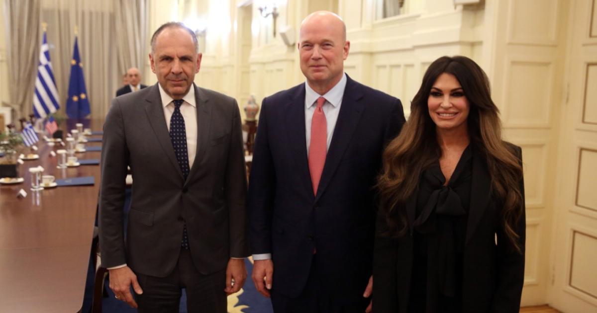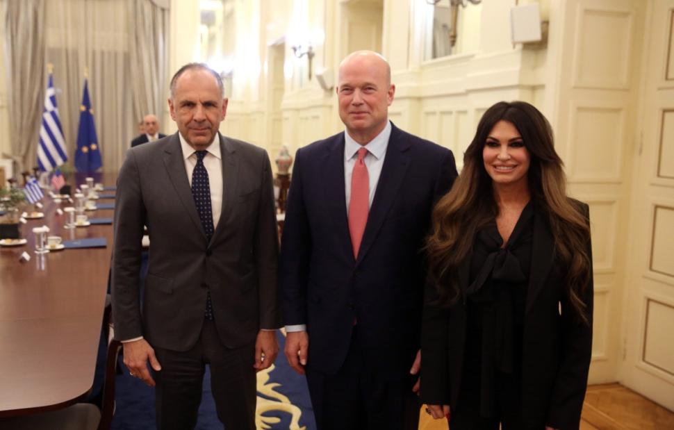 Με τον μόνιμο αντιπρόσωπο των Ηνωμένων Πολιτειών στο NATO, πρέσβη Μάθιου Γουίτακερ, με τον υπουργό Εξωτερικών, Γιώργο Γεραπετρίτη. Η συνάντηση έγινε στο υπουργείο Εξωτερικών, παρουσία της πρέσβειρας των ΗΠΑ στην Ελλάδα, Κίμπερλι Γκίλφοϊλ.