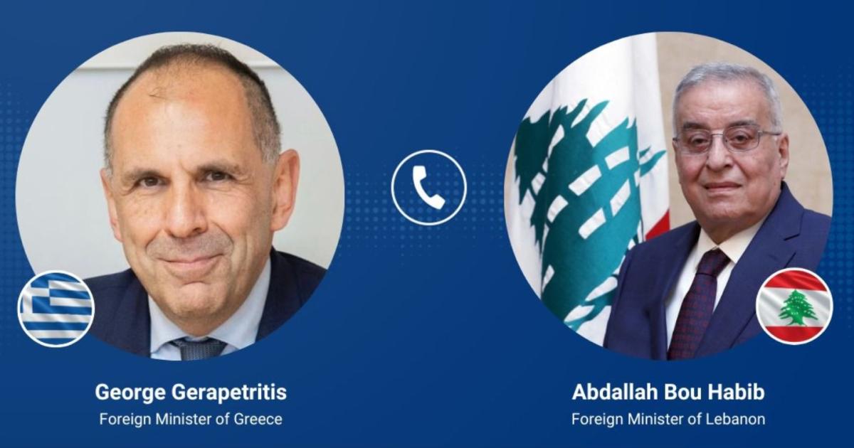 Με τον υπουργό Εξωτερικών του Λιβάνου, Αμπντάλα Μπου Χαμπίμπ, είχε τηλεφωνική επικοινωνία σήμερα ο Έλληνας υπουργός Εξωτερικών, Γιώργος Γεραπετρίτης.