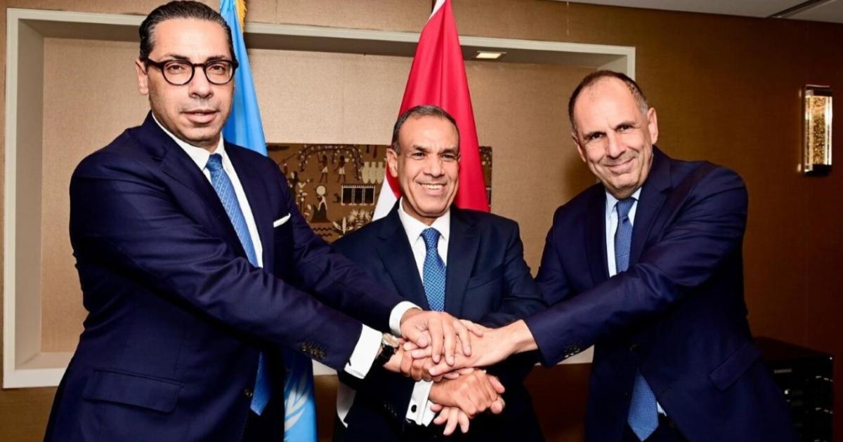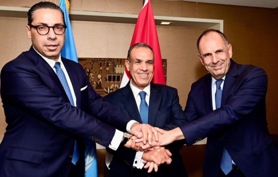 Με τον Αιγύπτιο ομόλογό του, Μπαντρ Αμπντελάτι συναντήθηκε στη Νέα Υόρκη ο υπουργός Εξωτερικών, Γιώργος Γεραπετρίτης, στη Μόνιμη Αντιπροσωπεία της Αιγύπτου στα Ηνωμένα Έθνη (ΟΗΕ). Ακόμα, πραγματοποιήθηκε και τριμερής συνάντηση μεταξύ των δύο υπουργών και του Κύπριου ομολόγου τους, Κωνσταντίνου Κόμπου.