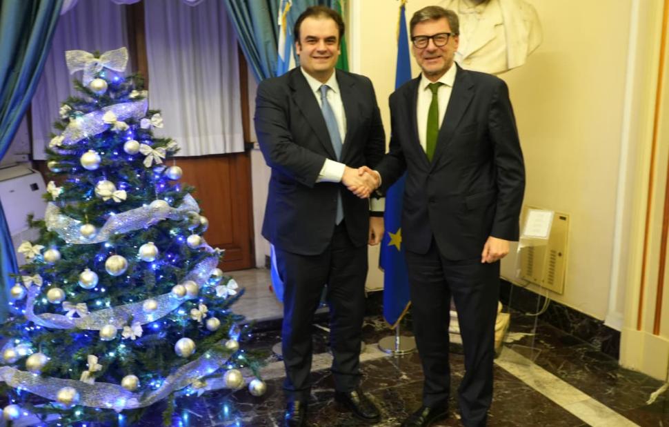 Επίσκεψη στη Ρώμη πραγματοποίησε σήμερα ο υπουργός Εθνικής Οικονομίας και Οικονομικών, Κυριάκος Πιερρακάκης. Ο Έλληνας υπουργός είχε συνομιλίες με τον Ιταλό ομόλογό του, Giancarlo Giorgetti. Οι επαφές διεξήχθησαν σε θετικό κλίμα, επιβεβαιώνοντας την κοινή βούληση Ελλάδας και Ιταλίας για περαιτέρω εμβάθυνση της συνεργασίας τους.