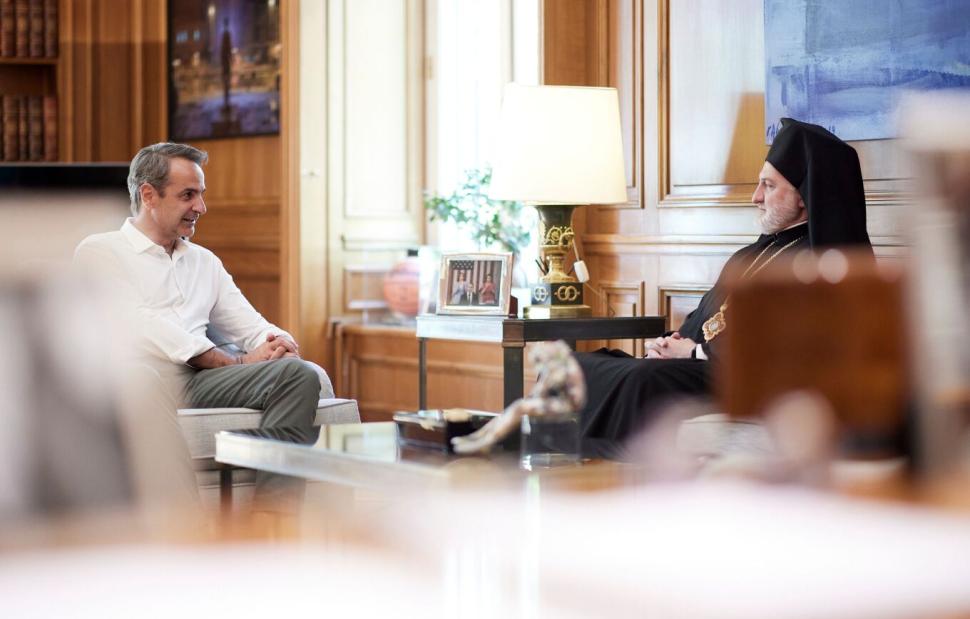 Τον Αρχιεπίσκοπο Αμερικής Ελπιδοφόρο υποδέχθηκε στο Μέγαρο Μαξίμου ο Κυριάκος Μητσοτάκης. Ο Πρωθυπουργός επαναβεβαίωσε τη στήριξή του στο πνευματικό, κοινωνικό και εκπαιδευτικό έργο της Αρχιεπισκοπής και ευχαρίστησε τον Αρχιεπίσκοπο Ελπιδοφόρο για τις υπηρεσίες που παρέχει στην ομογένεια, ενώ συζητήθηκε επίσης το νομοσχέδιο για την άρση των περιορισμών όσον αφορά στη δυνατότητα των Ελλήνων του εξωτερικού να ψηφίζουν στον τόπο διαμονής τους.