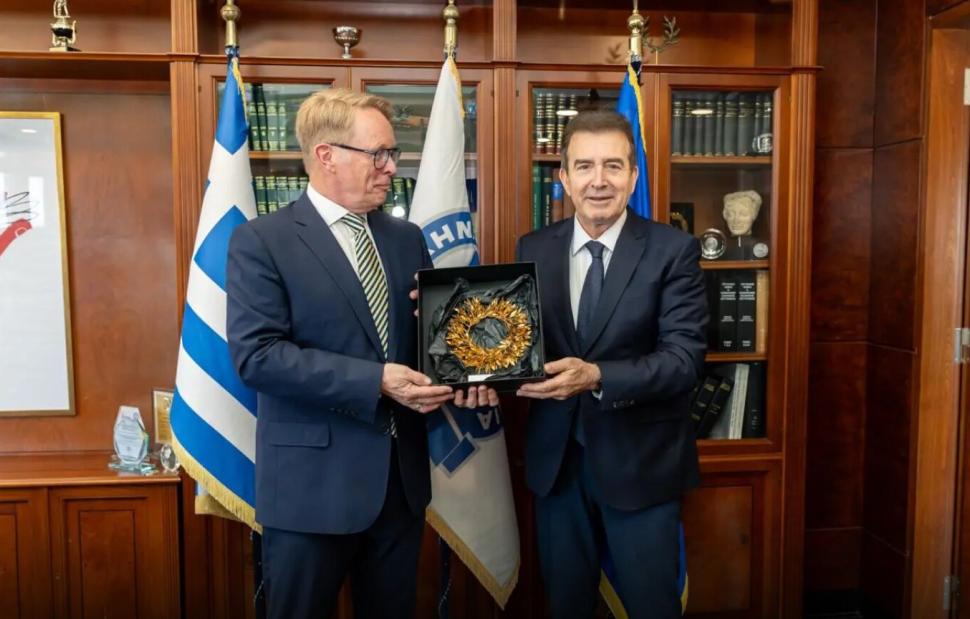Με τον Εκτελεστικό Διευθυντή της Frontex, Χανς Λέιτενς, συναντήθηκε ο υπουργός Προστασίας του Πολίτη, Μιχάλης Χρυσοχοΐδης, παρουσία του Γενικού Γραμματέα Δημόσιας Τάξης, Παναγιώτη Στάθη και του Αρχηγού της ΕΛ.ΑΣ, Αντιστρατήγου Δημητρίου Μάλλιου.