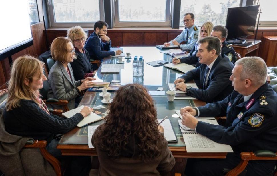 Σύμφωνα με ανακοίνωση του υπουργείου, οι δύο πλευρές συζήτησαν ζητήματα που αφορούν τη διαχείριση των μεταναστευτικών ροών, την ασφάλεια και την προστασία των εξωτερικών συνόρων της Ευρωπαϊκής Ένωσης, καθώς και τις επιστροφές υπηκόων τρίτων χωρών, με κεντρικό άξονα την προστασία των ανθρωπίνων δικαιωμάτων.