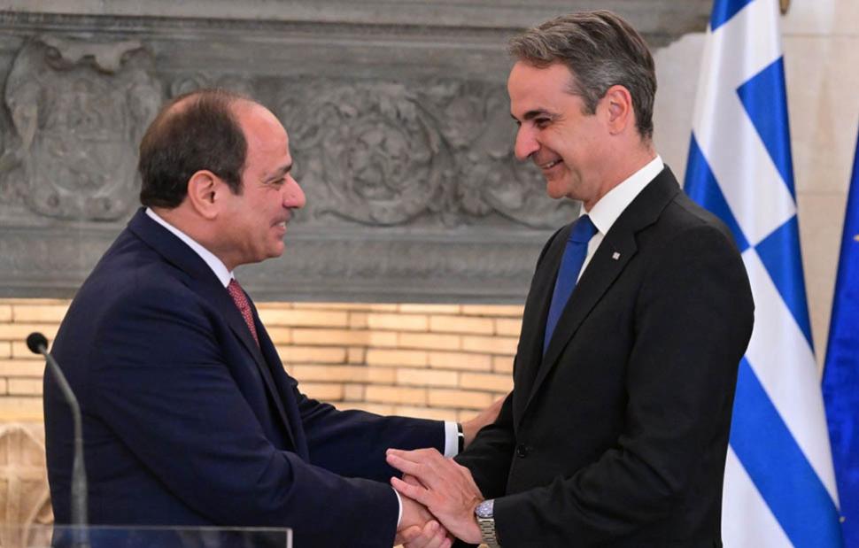 Μητσοτάκης και αλ Σίσι επιβεβαίωσαν την κοινή τους βούληση να ενισχύσουν περαιτέρω τους μηχανισμούς συνεργασίας, ιδίως στους τομείς της οικονομίας, του εμπορίου, των επενδύσεων, της ενέργειας και της ηλεκτρικής διασύνδεσης, καθώς και στην καταπολέμηση της παράνομης μετανάστευσης.