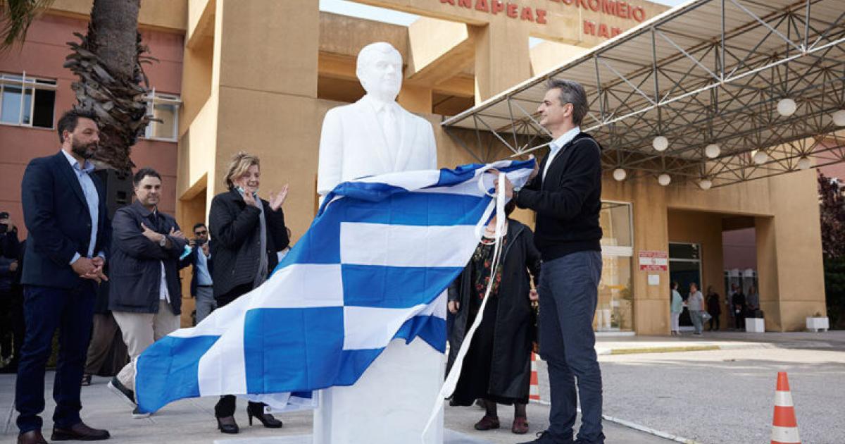 Κατά την σύντομη παρέμβασή του ο κ. Μητσοτάκης αναφέρθηκε στην επιστημονική και πολιτική πορεία του πρώην υπουργού του ΠΑΣΟΚ: