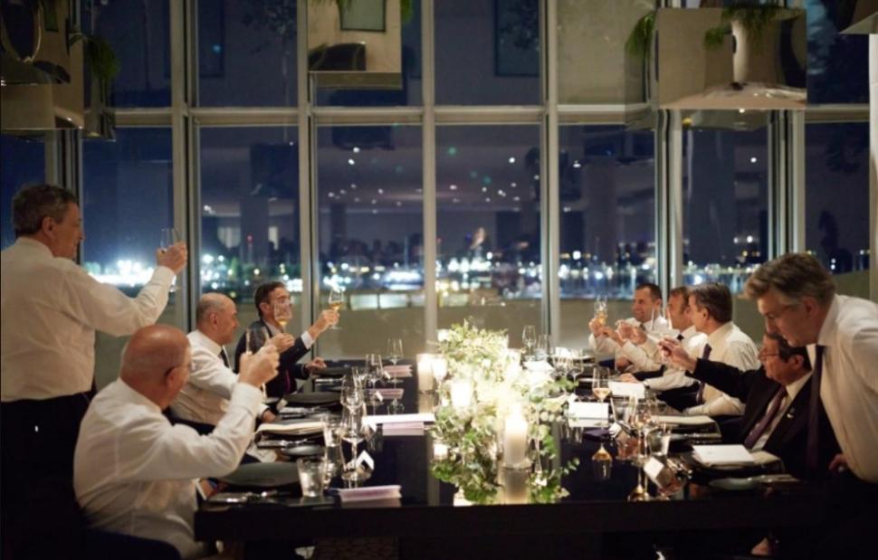 Στο δείπνο η ατμόσφαιρα ήταν φιλική. Οι ηγέτες είχαν την ευκαιρία να χαλαρώσουν μετά από τη Σύνοδο, βγάζοντας τα σακάκια και λύνοντας τις γραβάτες. Στις φωτογραφίες που δημοσιεύτηκαν από το δείπνο μόνο οι Νίκος Αναστασιάδης και Πέδρο Σάντσεθ φαίνονται να έχουν μείνει με τα κοστούμια τους.